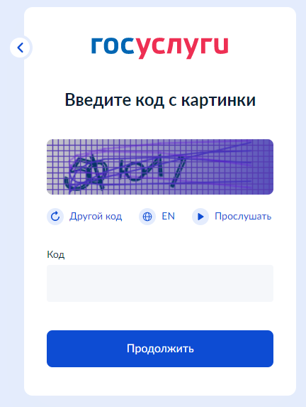 5. Подтвердите, что Вы не робот, введите код с картинки, либо ответьте на контрольный вопрос, если устанавливали его ранее в личном кабинете, и нажмите «Продолжить».