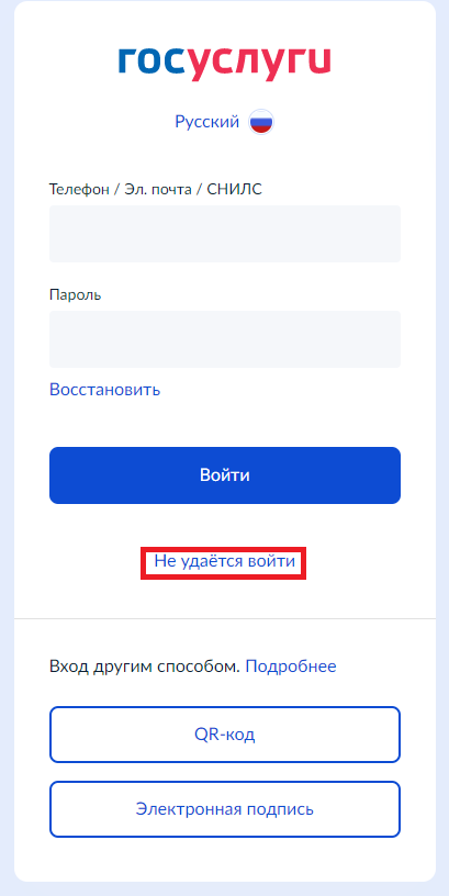3. На странице авторизации нажмите на кнопку «Восстановить».