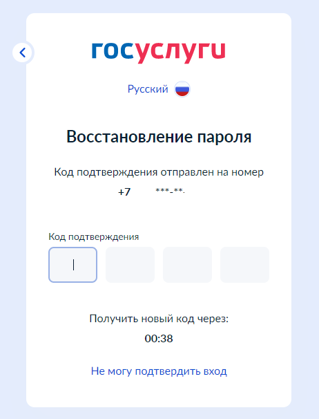 | На номер телефона поступит код подтверждения, который необходимо ввести в поле и нажать кнопку «Продолжить»; |