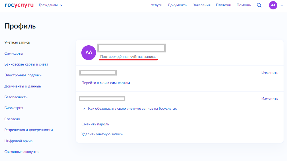 3. Нажмите «Подтверждение учетной записи Госуслуг».