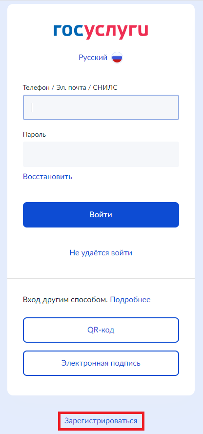 3. Нажмите «Регистрация на gosuslugi.ru».