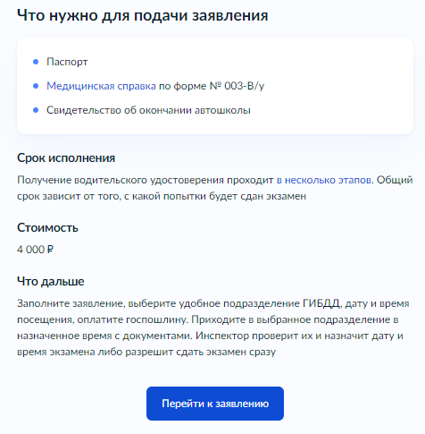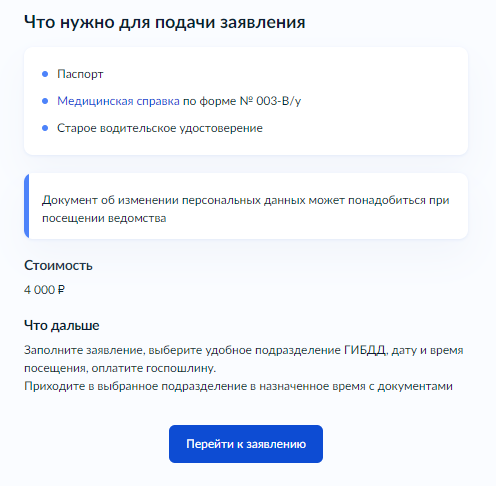 Если водительское удостоверение было выдано органами Украины, ДНР, ЛНР, Запорожской и Херсонской области, то получить водительское удостоверение можно в особом порядке. Нажмите «Перейти к получению в особом порядке».