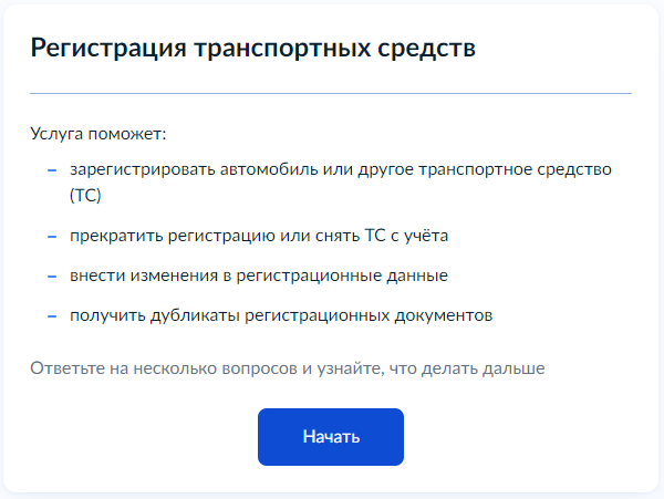 3. Чтобы перейти к заполнению заявления нажмите «Начать».