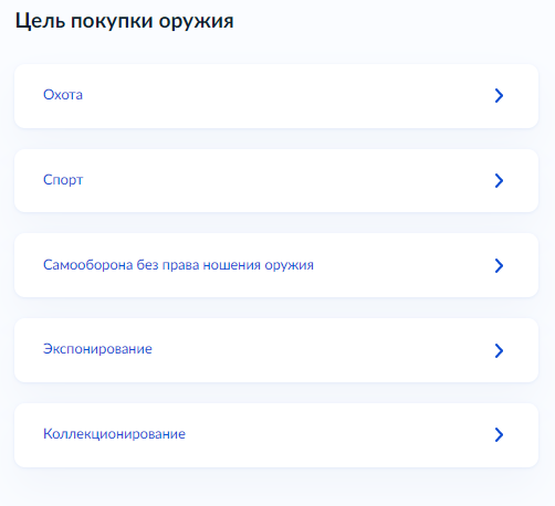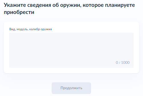 10. Далее укажите сведения об оружии, которое планируете приобрести и цель приобретения этого оружия.