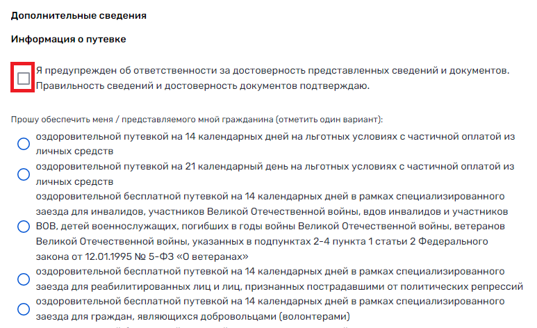 Доступен вид путевки: