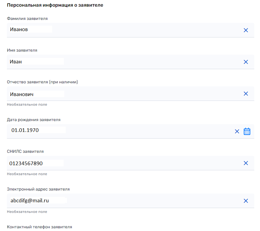 4.1. Заполните персональную информацию о заявителе либо проверьте данные, если они заполнились автоматически: