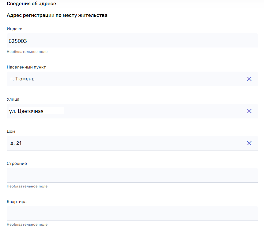 4.3. Заполните информацию об адресе регистрации и месте пребывания: