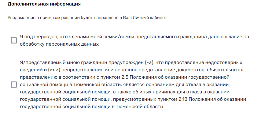 4.4. Заполните необходимую информацию по заявлению, соответствующую Вашей жизненной ситуации.