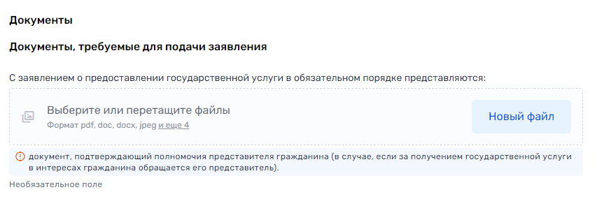 9. Добавьте документы, требуемые для подачи заявления: