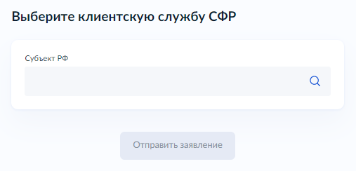 15. Заключительный шаг: выберите клиентскую службу СФР и нажмите кнопку "отправить заявление."