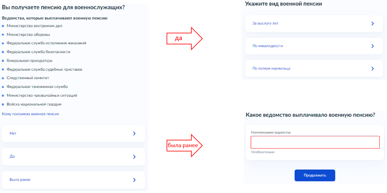 10. Если вы оформляете пенсию по случаю потери кормильца, выберите один из вариантов, затем выполните повторно пункты 7–9 и перейдите к пункту 11.