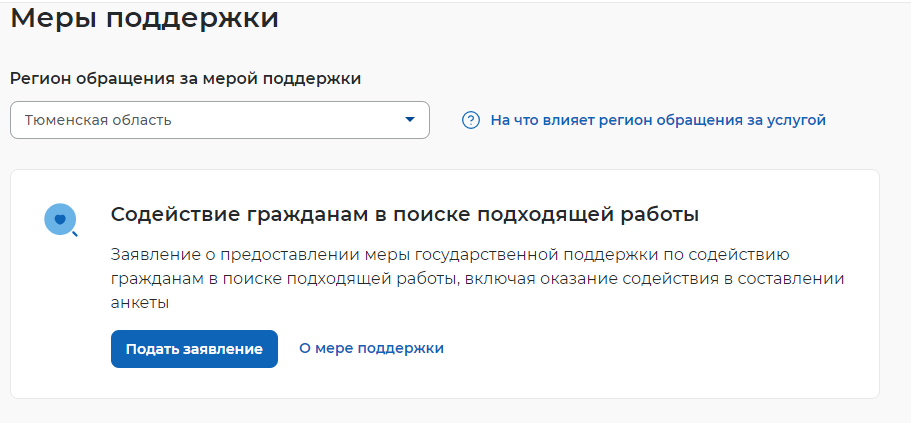 , а затем "Услуги центра занятости" и далее "Меры поддержки".