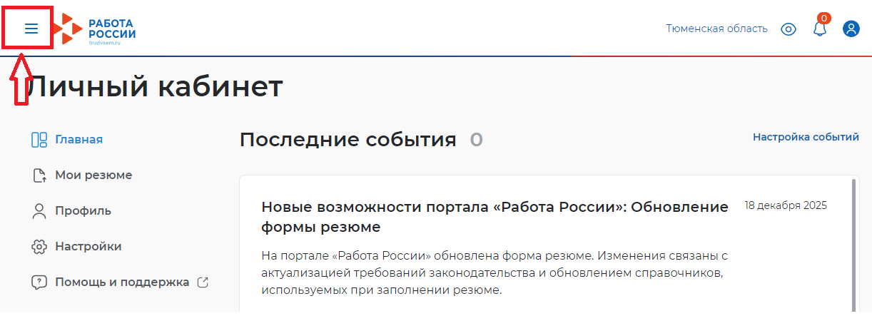Если вы авторизованы - нажмите на "Работа России" в левом верхнем углу