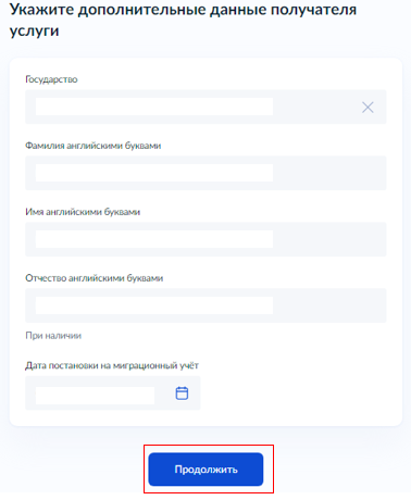 Если гражданство у получателя "Российское", укажите паспортные данные получателя услуги. Перейдите к пункту 9.