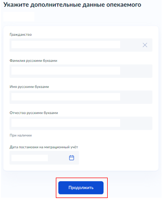 Если гражданство опекаемого "Российское", укажите дополнительные данные опекаемого.