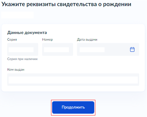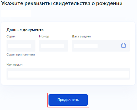 Если гражданство у ребёнка "Российское" и рождение ребёнка зарегистрировано "в России", укажите реквизиты записи акта о рождении и перейдите к пункту 9. Обратите внимание: если ребенок совершеннолетний, необходимо указать его паспортные данные.