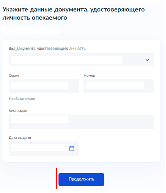 Обратите внимание: если опекаемый совершеннолетний, необходимо указать его паспортные данные.