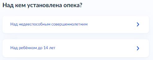 Выберите, где установлена опека (попечительство), далее укажите реквизиты документа, подтверждающего установление опеки (попечительства).