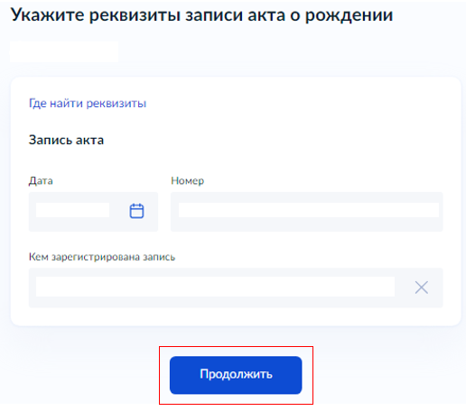 Если рождение ребёнка зарегистрировано "В России", укажите реквизиты записи акта о рождении. Перейдите к пункту 9.