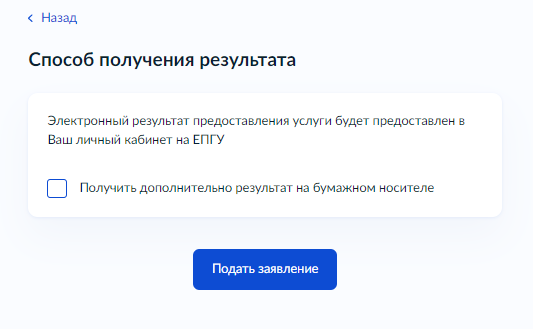 10. Подайте заявление. При необходимости результат можно получить на бумажном носителе.