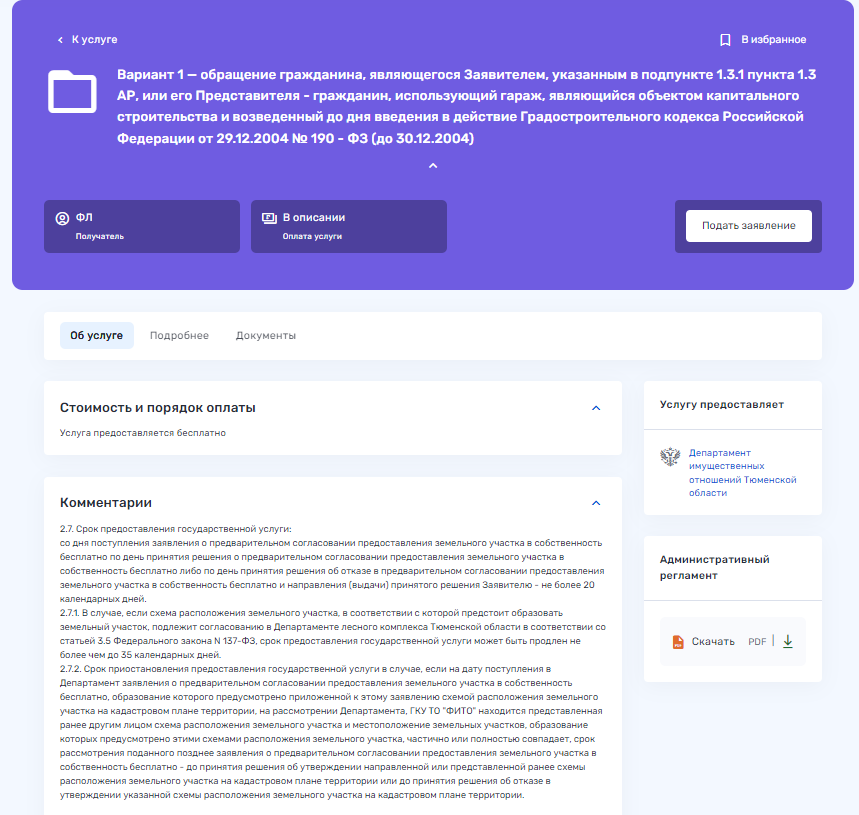 1. Для получения услуги на портале услуг Тюменской области перейдите по ссылке: