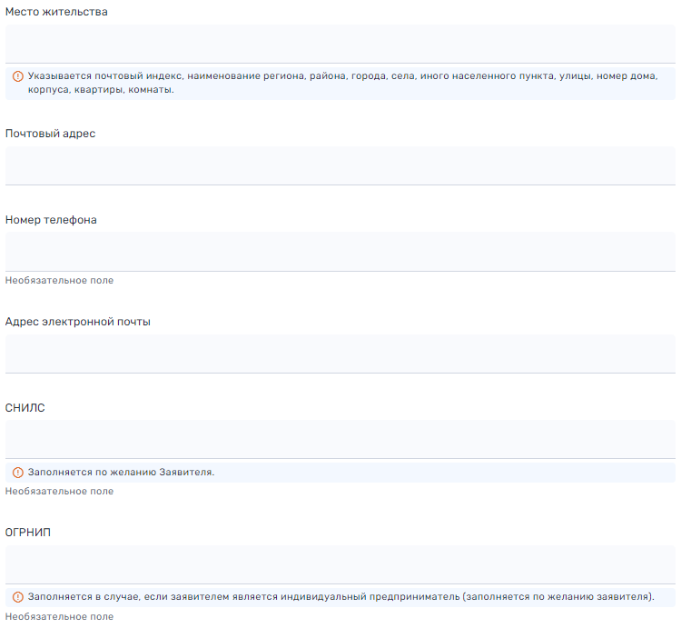 6. В зависимости от того, кто подает заявление, заполните контактные данные, если заявление подается вами, то некоторые контактные данные заполнятся втоматически с Госуслуг.