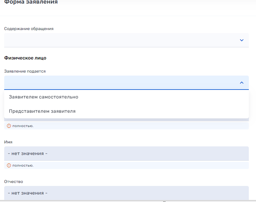 Так же выберите кем подается заявление заявителем или представителем.
