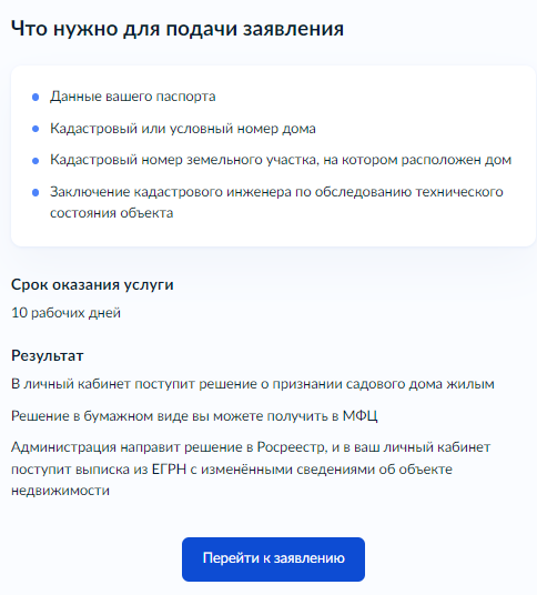 7. После ответов на предложенные вопросы по услуге перейдите к заявлению.