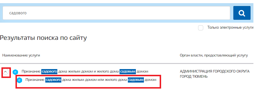 В поисковой строке заполните «Садового», «Поиск». Далее выберите необходимый муниципальный район.