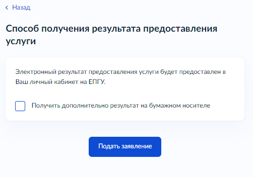 9. Подайте заявление. При необходимости результат можно получить на бумажном носителе.