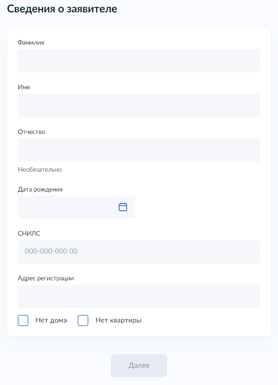 Для заполнения заявления переходите к 5 пункту инструкции. Для следующих категорий потребуется дополнительно загрузить документы: