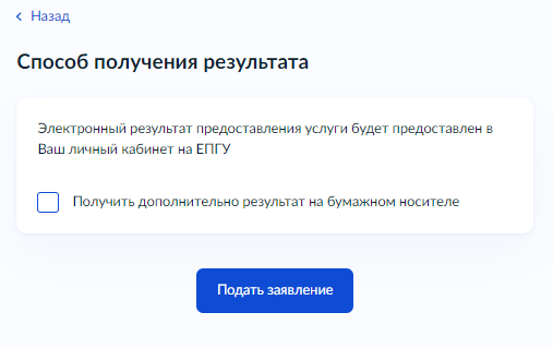 11. Подайте заявление. При необходимости результат можно получить на бумажном носителе.