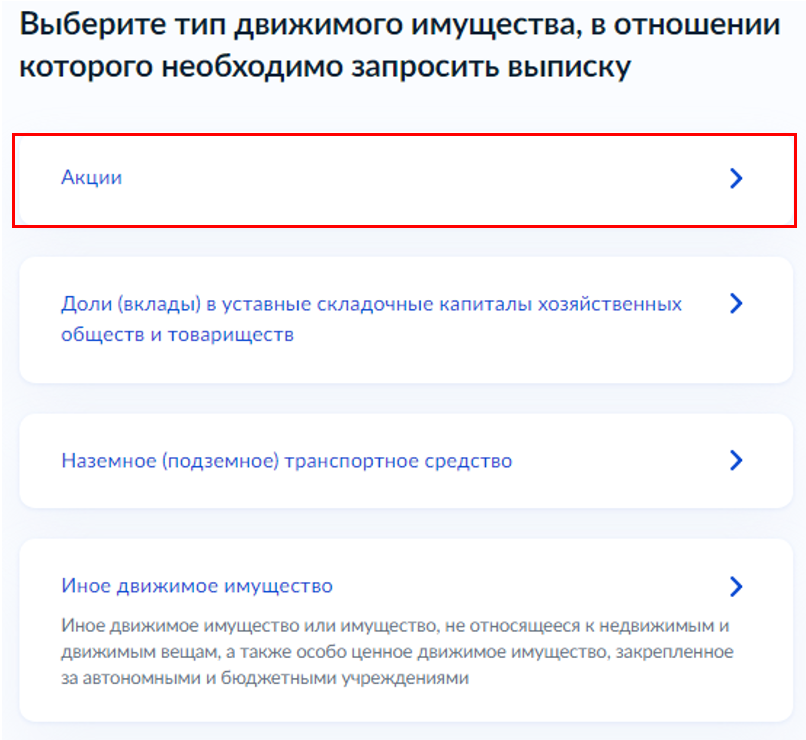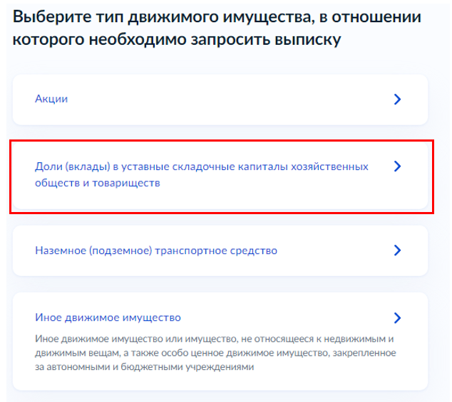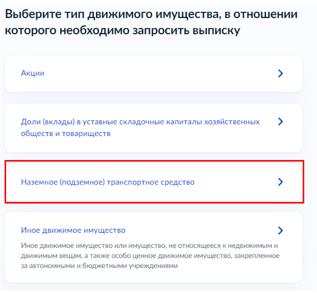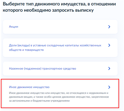 5. Выберите вид имущества, в отношении которого запрашивается выписка и заполните сведения о нем.