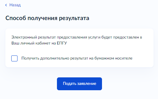 7. Подайте заявление. При необходимости результат можно получить на бумажном носителе.