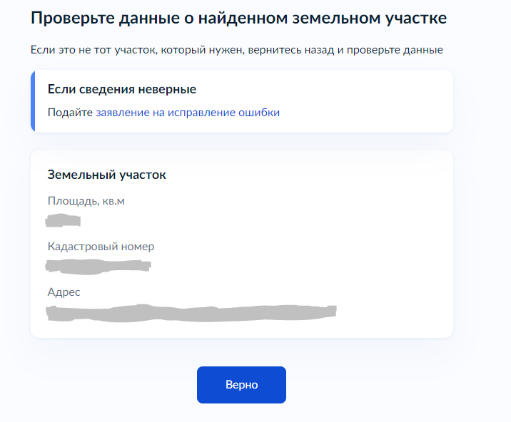 Далее выберите земельный участок для подключения. Если нужного участка нет в списке, то укажите данные вручную и нажмите «Продолжить».