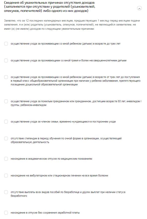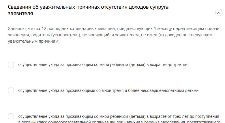 Если Вы состоите в браке, и у супруга нет доходов, то необходимо указать уважительные причины их отсутствия.