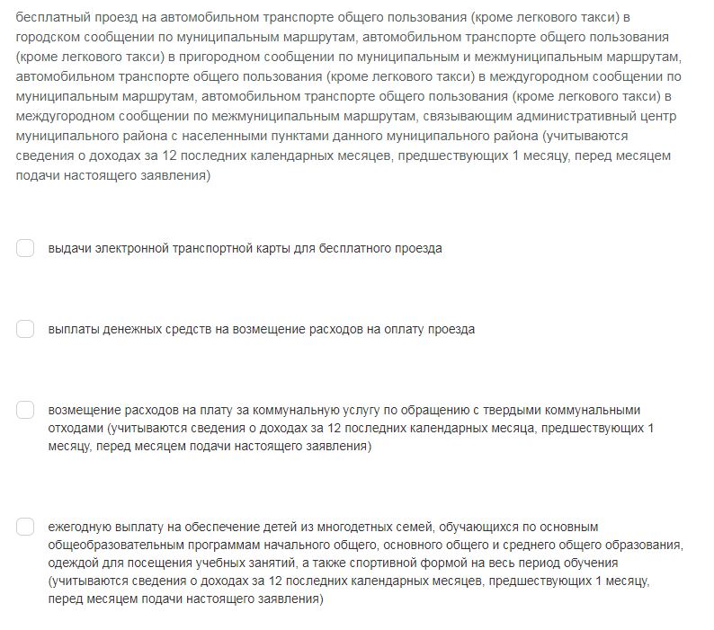 7. Выберите необходимые меры социальной поддержки (не менее 2х), в зависимости от необходимой меры социальной поддержки (услуги):