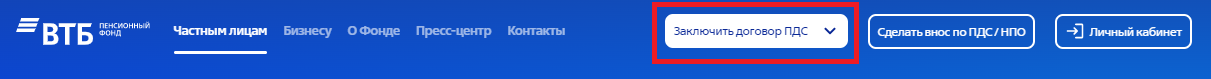 1. На первой странице сайт выберите кнопку «Оформить договор ПДС».