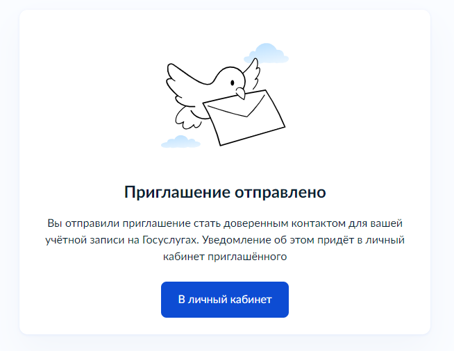После отправки приглашения выйдет оповещение. Далее доверенный контакт должен подтвердить свое согласие.
