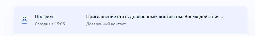 Для подтверждения окончания процесса закрепления доверенного контакта в его учетной записи появится оповещение.